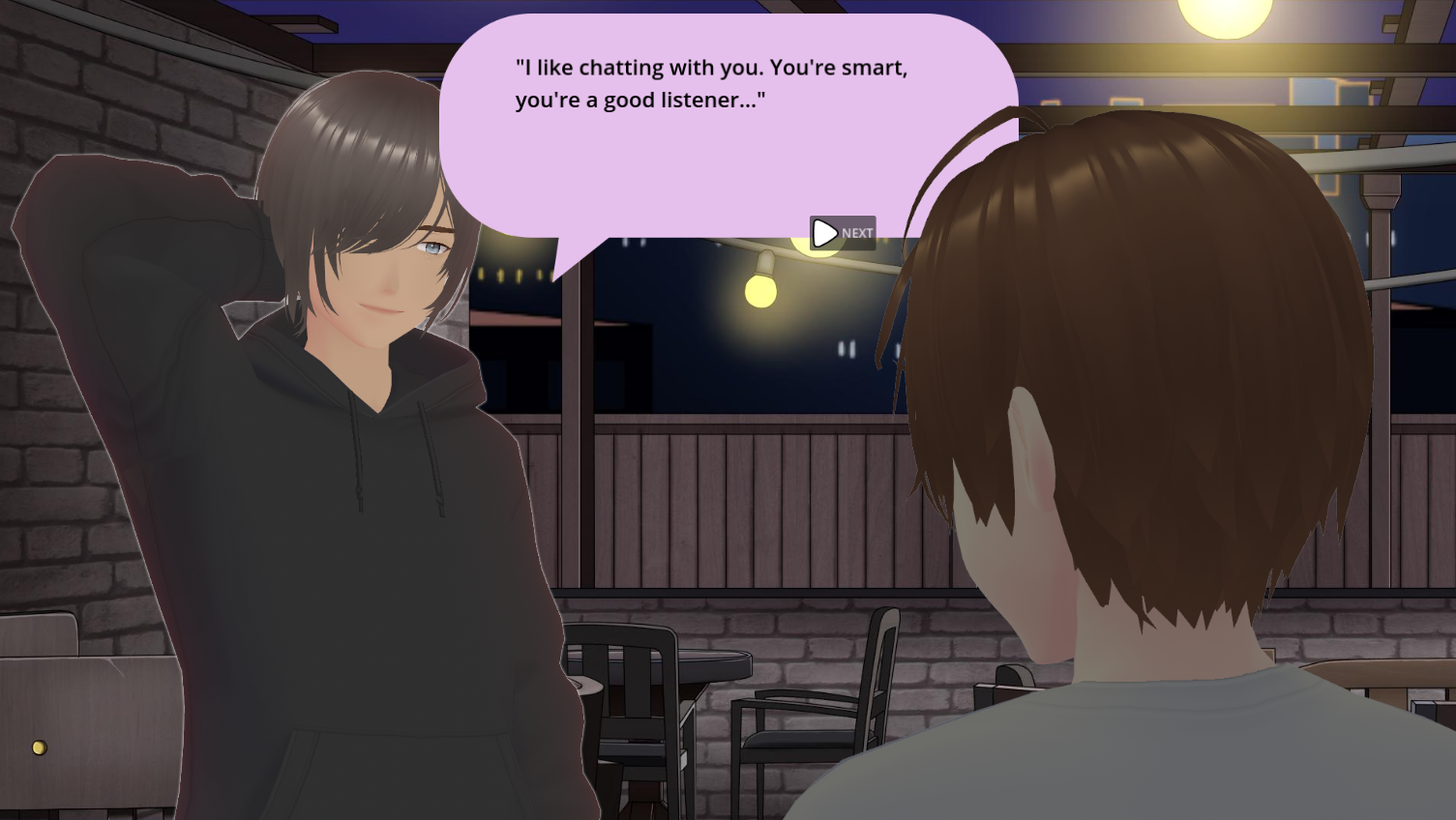 I thought briefly about that scene in Annie Hall I think? Where two characters talk to each other on screen but the subtitles intentionally say something different. Then I saw a brief reel about Brennan Lee Mulligan’s NPC being rejected by another player character in the latest season of Dungeons & Drag Queens, which really unlocked the whole idea about this “anxiety goblin” and this “whack-a-mole” situation. Choices, in my vignette, are not life-altering moments, and they won’t impact what the other character says since it’s all in someone’s head. The story is about an anxious character who needs to deal with a very awkward situation, while having their inner voice shouting random stuff in their head. It’s a whack-a-goblin situation but the goblin can’t die — the player can only temporarily whack them.